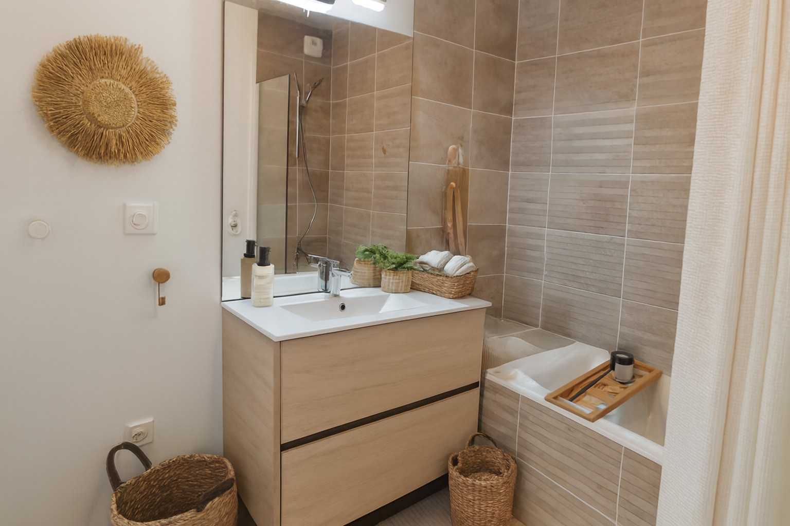 Dès l’entrée, l’atmosphère chaleureuse et la belle luminosité vous accueillent. Sur votre droite, le séjour‑cuisine s’ouvre sur une première terrasse 12.3m², idéale pour profiter d’un petit‑déjeuner au soleil ou d’un moment de détente en fin de journée.