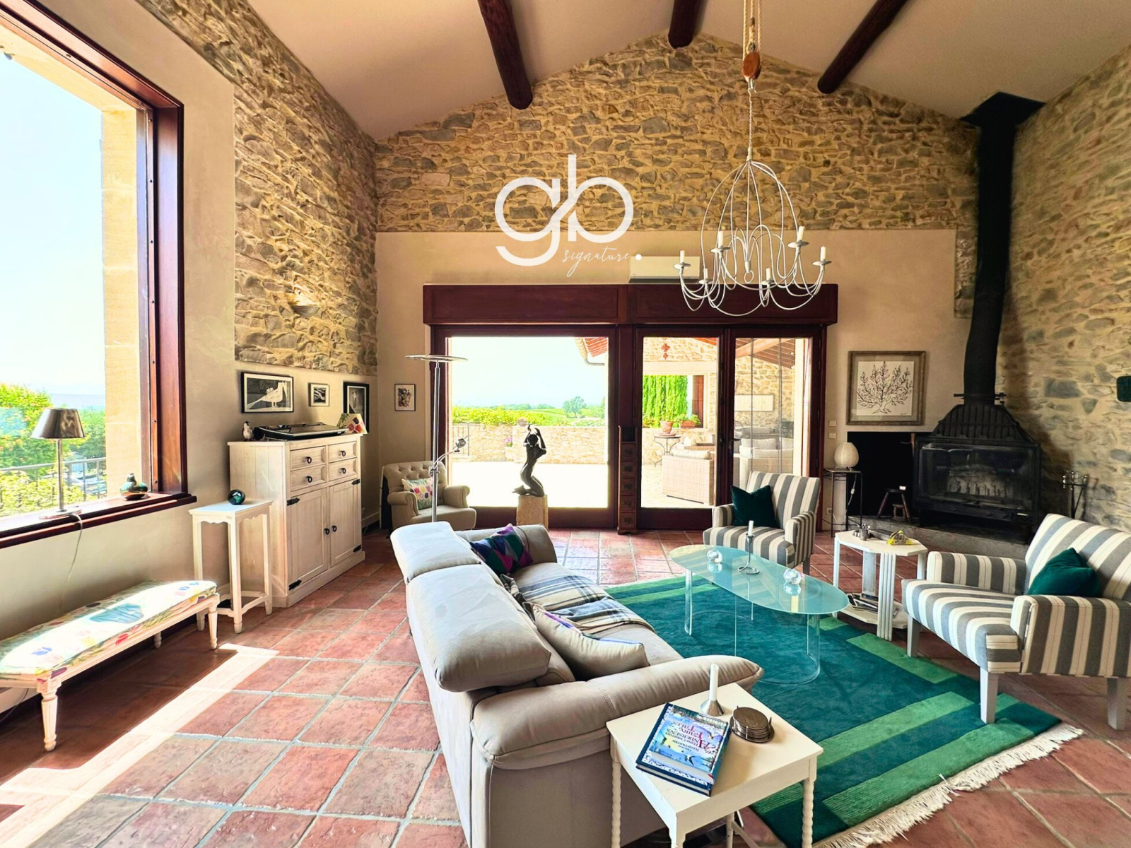 • Séjour en pierre avec accès terrasse et piscine