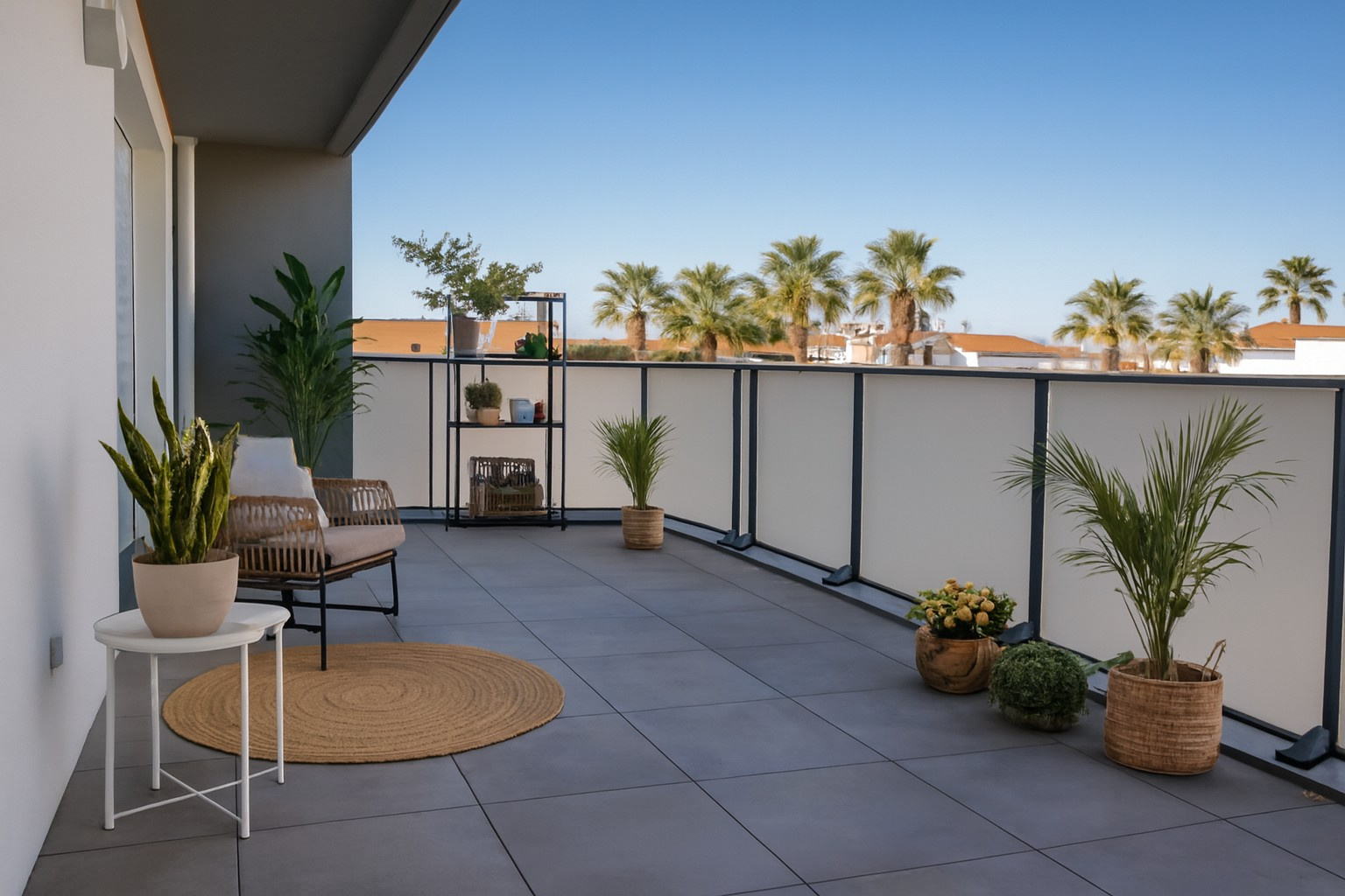 - Terrasse de 22 m² accessible depuis le séjour et la chambre