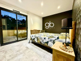 Au rez de chaussée, la villa propose une suite parentale d’environ 30 m² comprenant un dressing sur mesure et une salle d’eau avec douche à l’italienne. L’accès direct à la terrasse renforce la fluidité des circulations et le confort de vie.