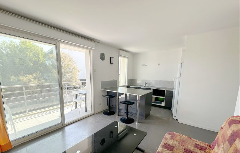 Palavas-Les-Flots , rive gauche , en 1er ligne , charmant appartement T3 de 47,36 comprendant un espace de vie avec cuisine équipée donnant sur une terrasse de 8,45m2 avec une vue mer , deux chambres, une salle d'eau , un toilette indépendant.