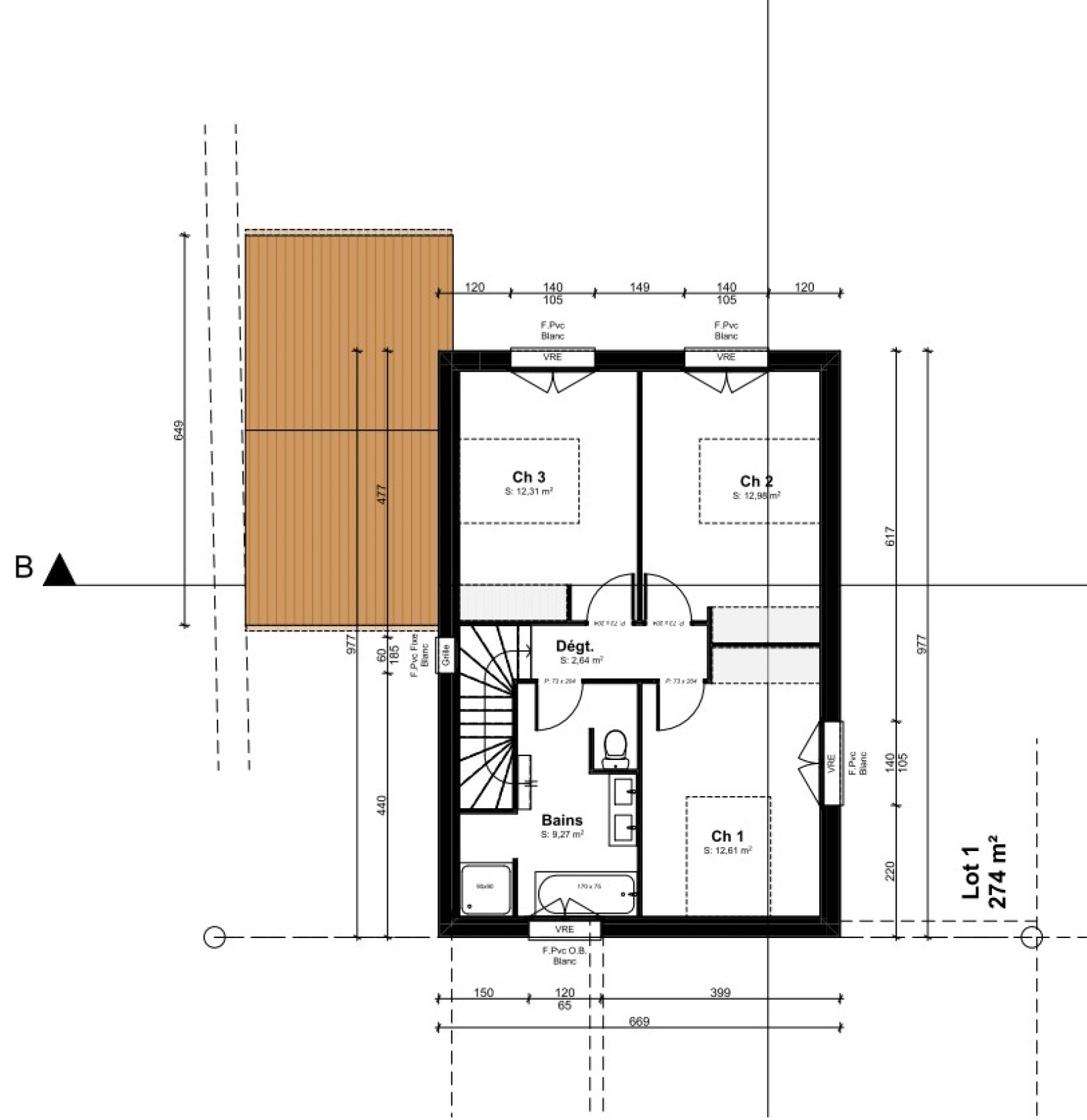 À l’étage, profitez de trois grandes chambres de 12 à 13 m², parfaites pour accueillir toute la famille avec chacune son placard de rangement, ainsi qu’une superbe salle de bain de plus de 9 m² avec baignoire, douche et WC.