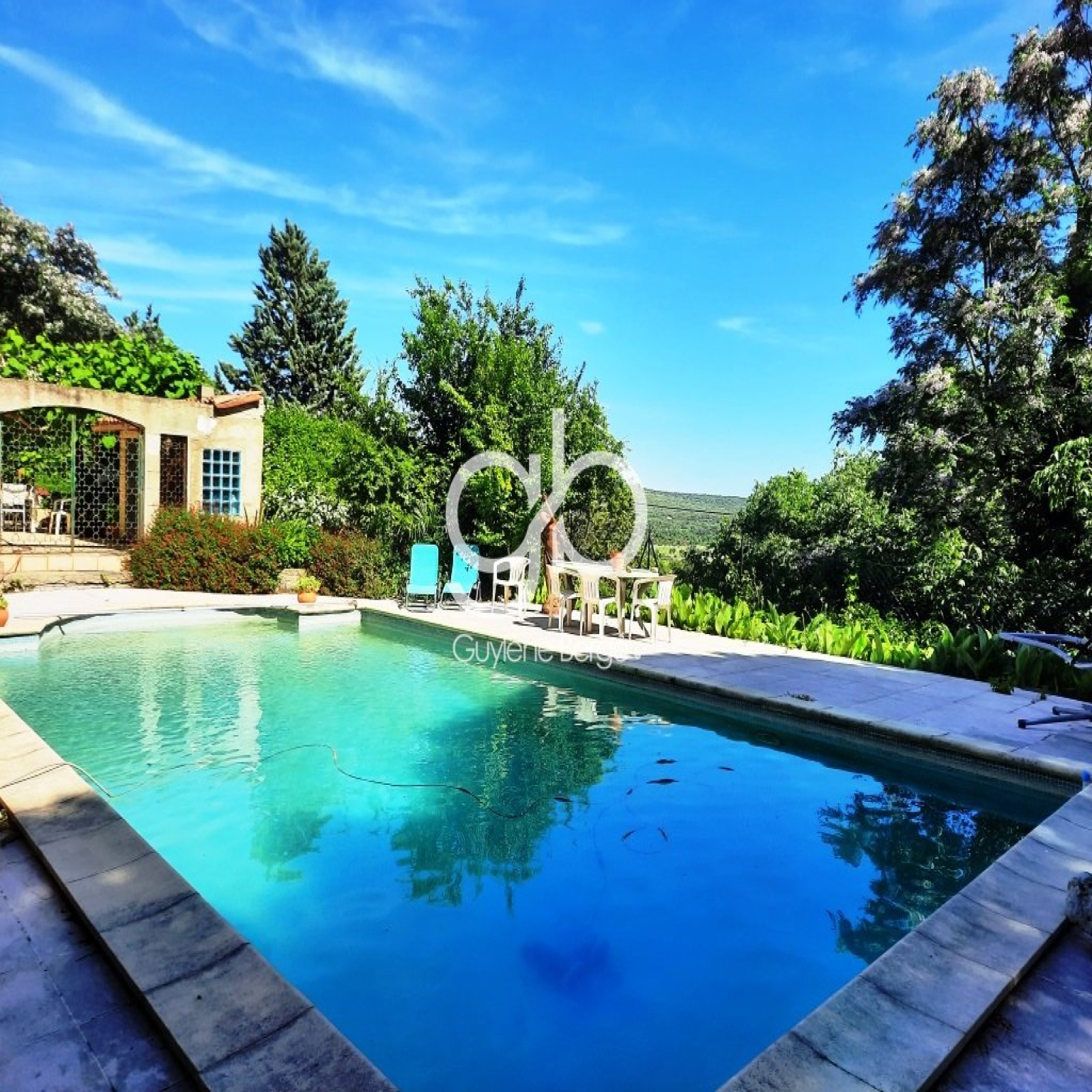 À l’extérieur, la magie opère immédiatement : une immense terrasse d’environ 150 m² s’ouvre sur une piscine généreuse de 50m² accompagnée de son pool house comprenant salle d’eau et local technique. Un véritable espace de détente pour profiter du climat doux et ensoleillé de la région.