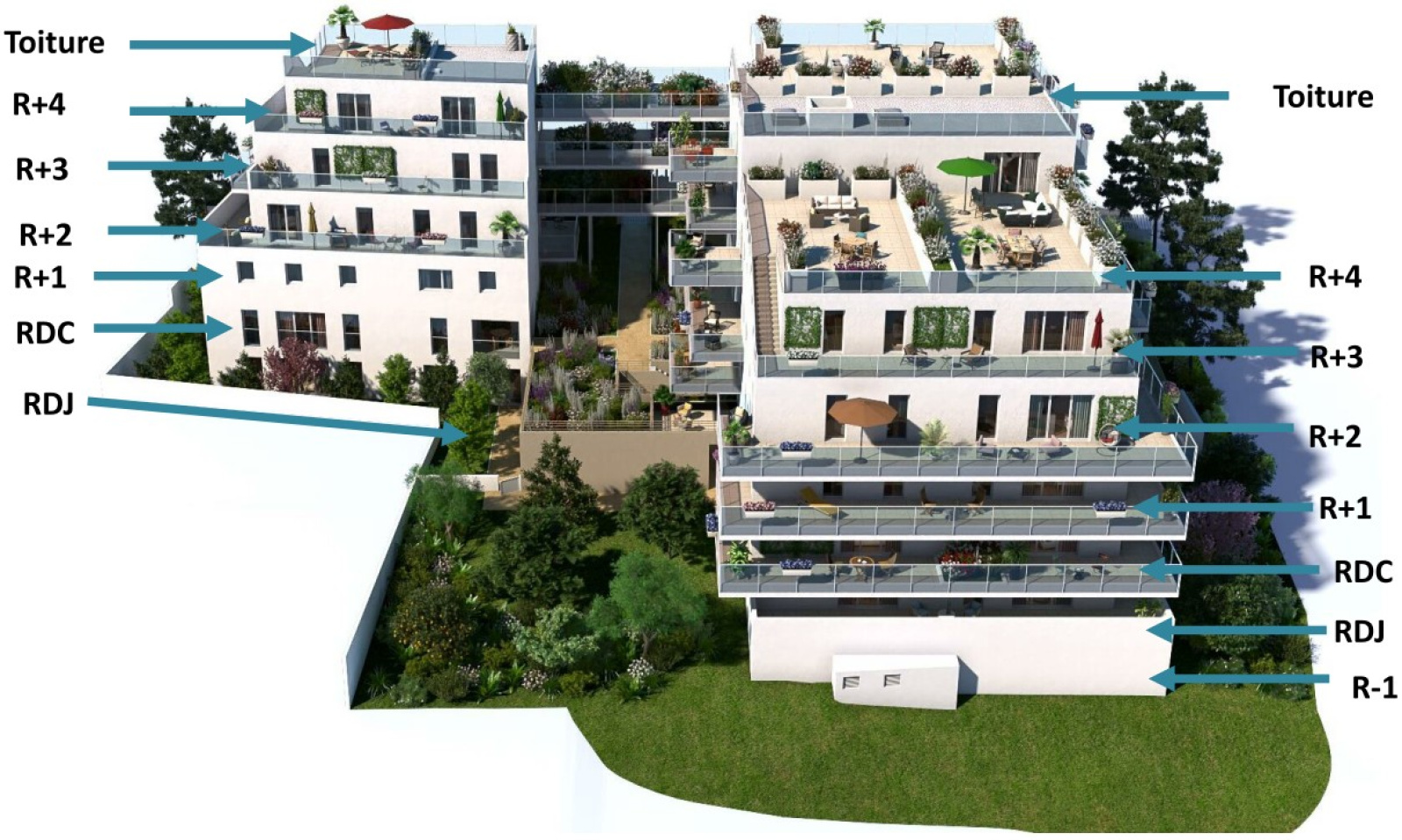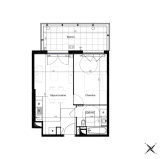- Pièce de vie et chambre donnant sur un vaste balcon de 12,8 m².