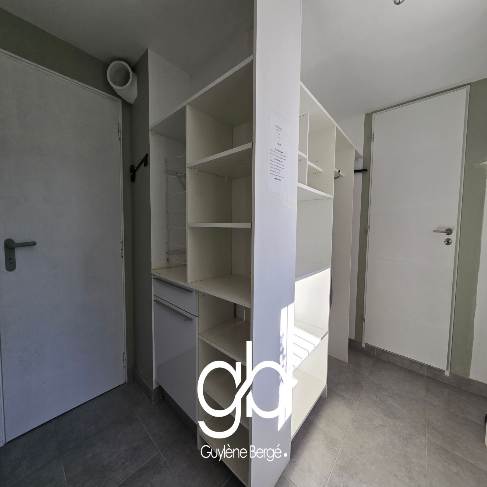Un grand garage carrelé avec mezzanine permet de disposer d’un vaste espace de rangement ou d’atelier, complété par un cellier pratique.