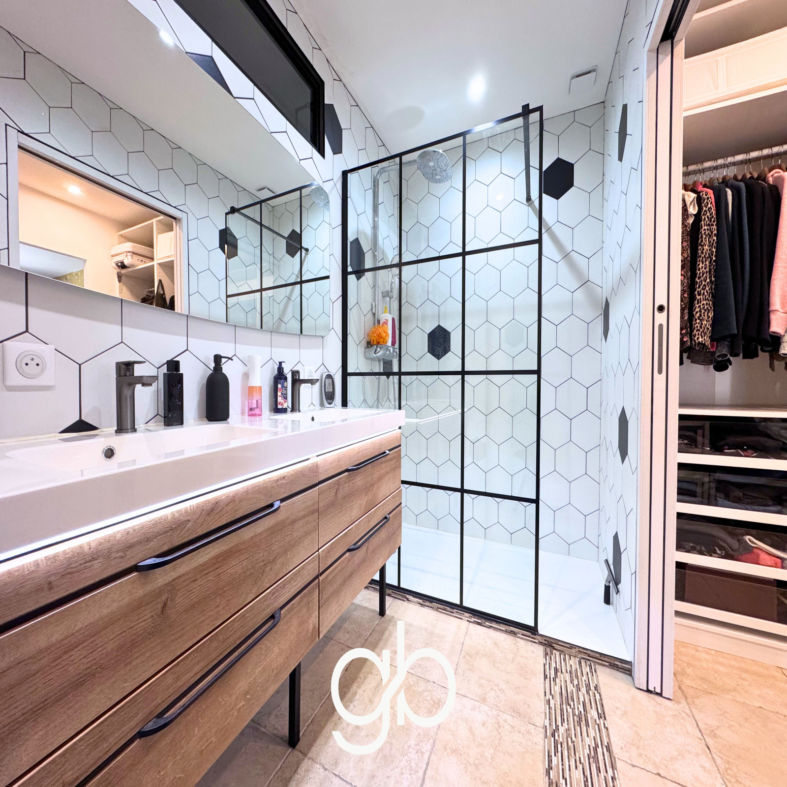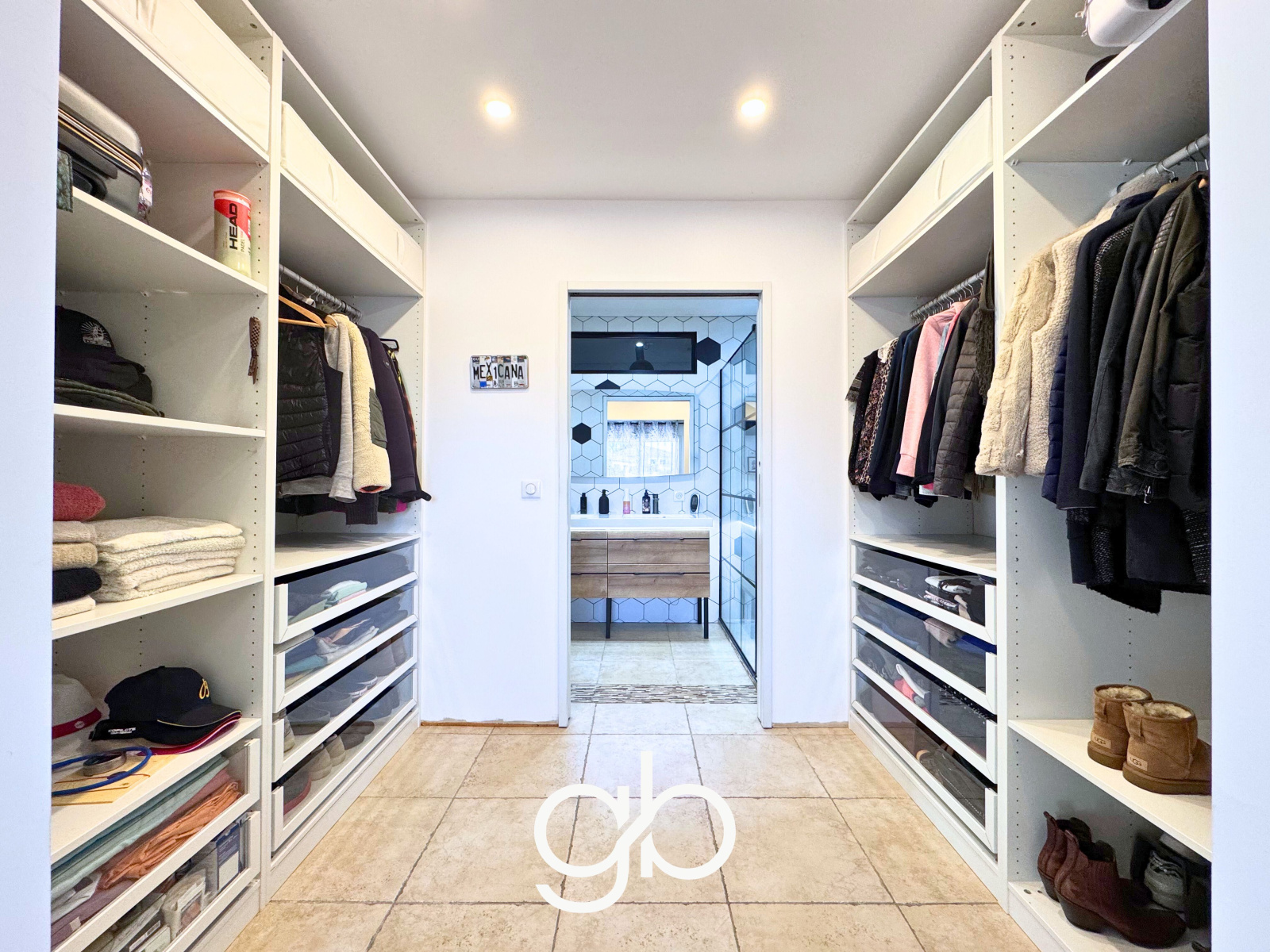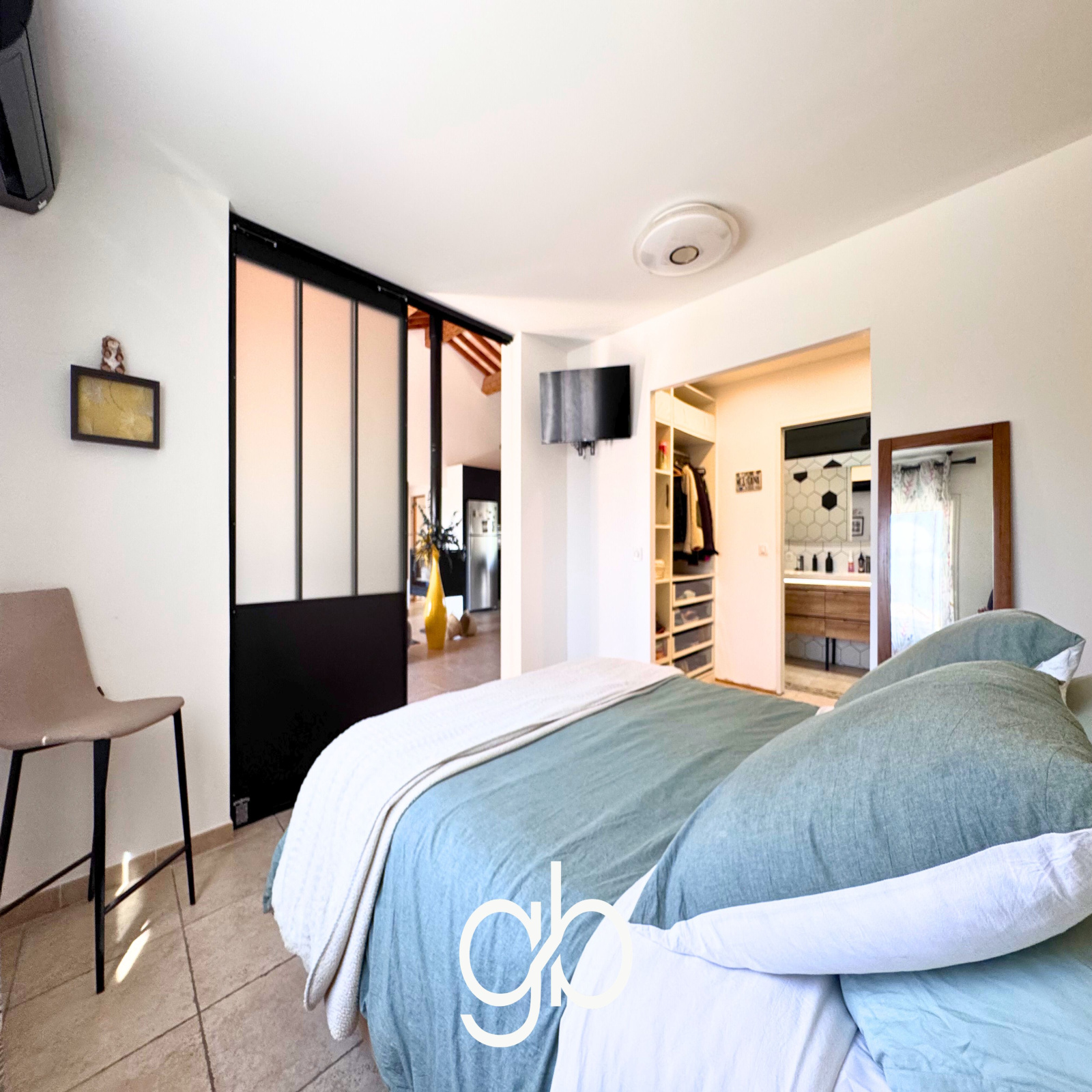 La circulation se fait ensuite vers l’espace nuit, conçu pour garantir indépendance et confort à chaque occupant. La suite principale propose un espace complet avec dressing et salle d’eau. Les deux autres chambres fonctionnent également comme de véritables suites avec leur propre salle d’eau et WC, ce qui permet d’accueillir famille ou invités sans contrainte.