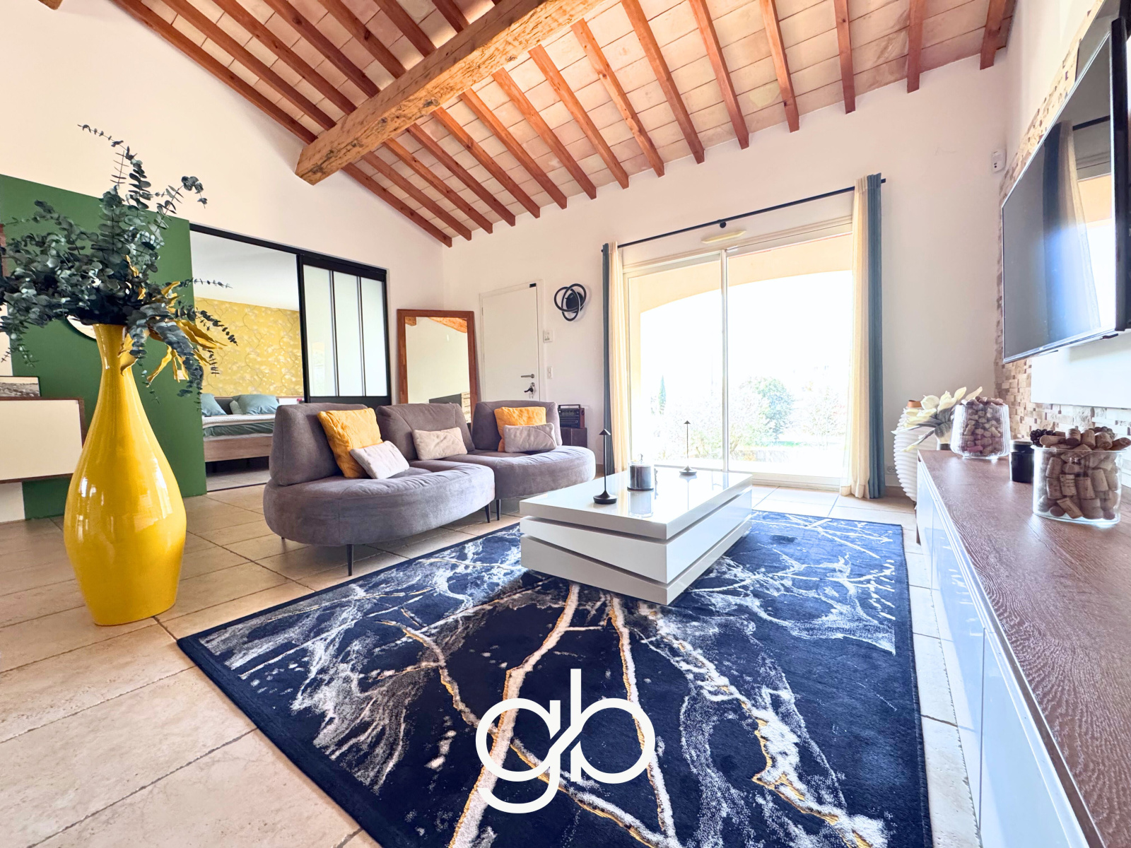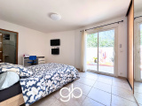 Côté technique, la maison dispose de menuiseries aluminium double vitrage, de volets roulants, d’un sol en travertin, d’une alarme, d’un vide sanitaire et d’une porte de garage motorisée.