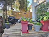 Le jardin, lui est bien arboré en contrebas d'une piscine au chlore, qui se trouve sur la terrasse au même niveau que la salle à manger, une véranda avec un jaccuzzi est situé sur cette même terrasse, ainsi que la cuisine d'été afin de recevoir famille et amis en toute simplicité.