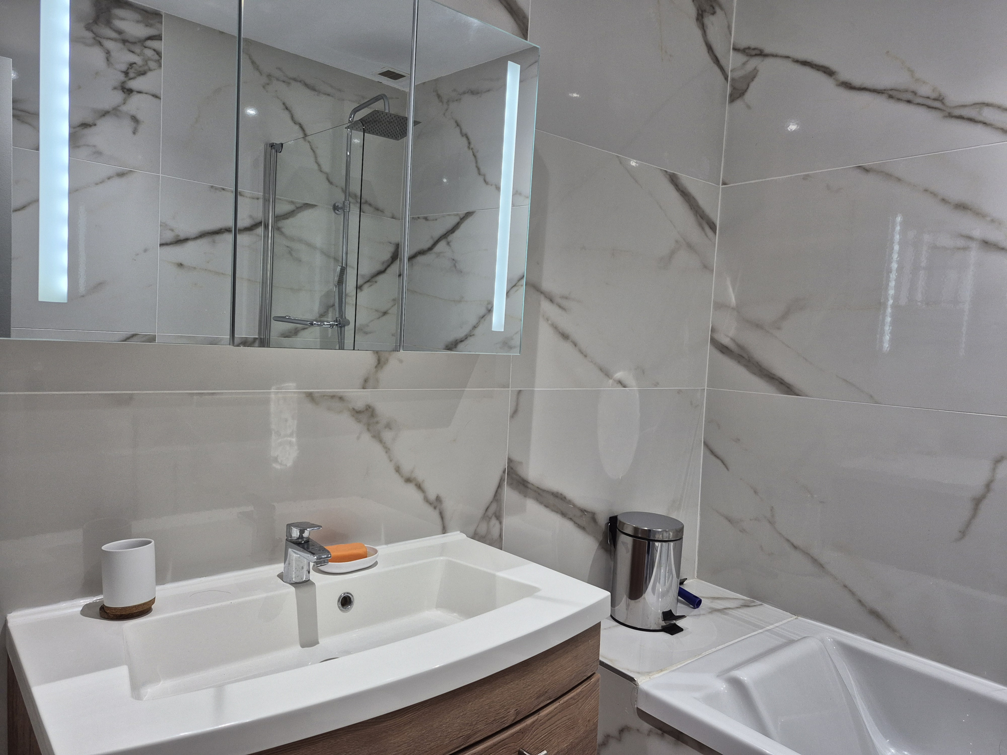 Dès l'entrée vous serez séduit par un grand salon / salle à manger avec son sol en Marbre qui apporte fraîcheur et élégance.