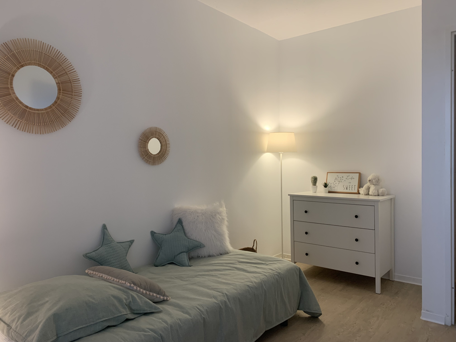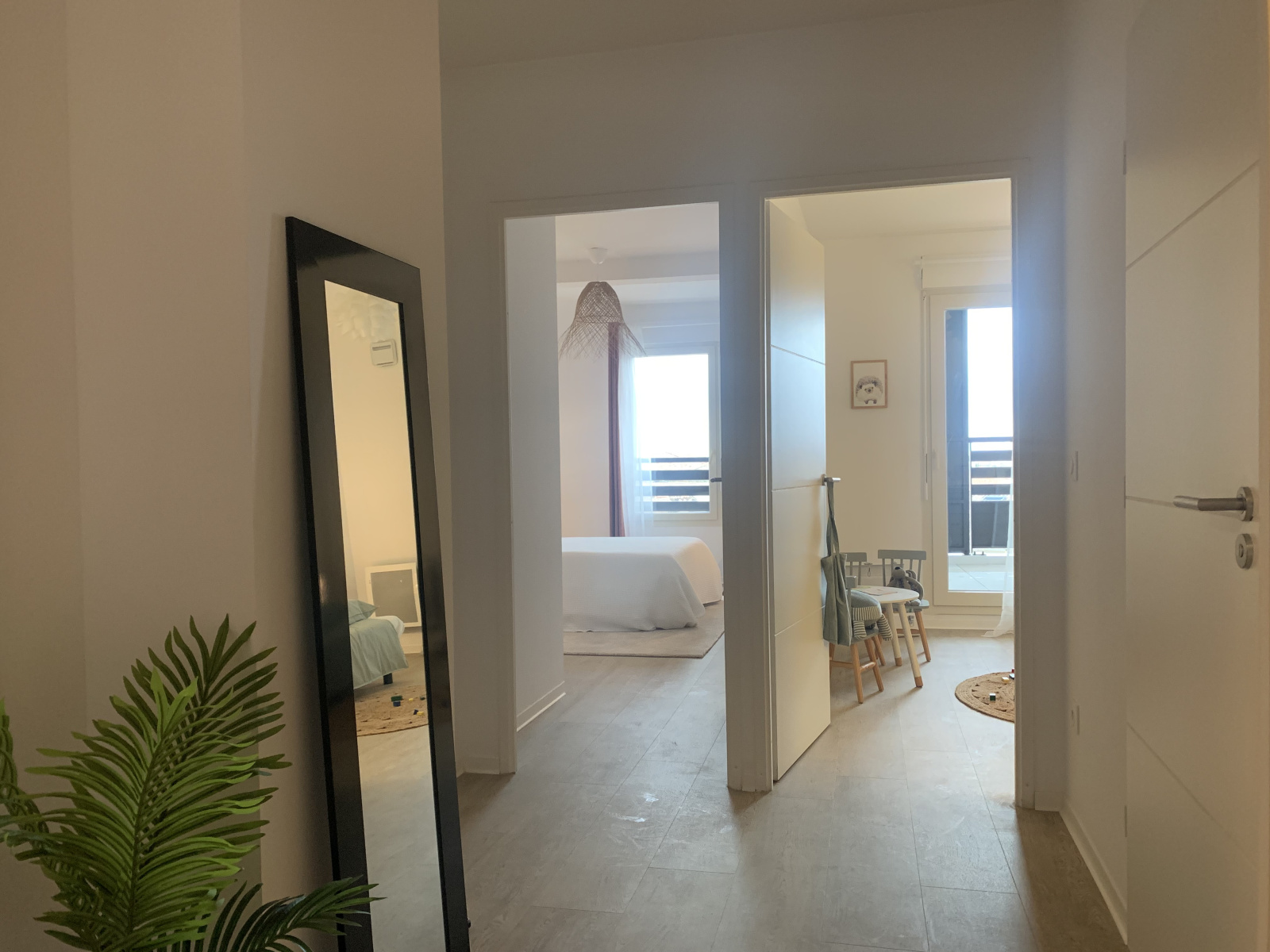 Dès l’entrée, vous découvrez un premier espace nuit composé de deux chambres, dont l’une prolongée par un balcon, ainsi qu’une salle de bains moderne et une toilette indépendante. Cet agencement permet de préserver l’intimité de chacun tout en offrant un espace fonctionnel et agréable.