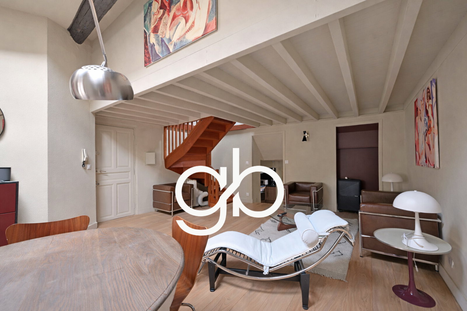 Espace de Vie (26 m²) : Un vaste séjour baigné de lumière avec un parquet authentique, créant une atmosphère chaleureuse.