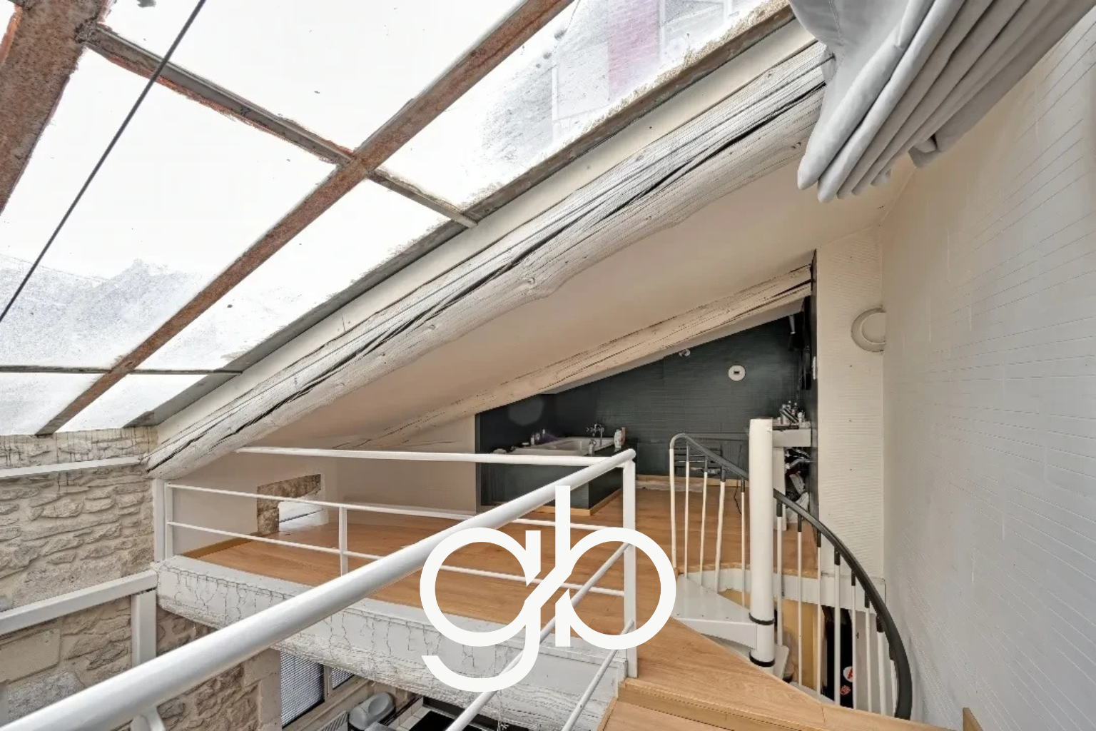 Pièce de vie (27 m²) : Un séjour spacieux baigné de lumière grâce à une magnifique verrière type atelier, apportant un caractère industriel et une clarté rare en centre historique.