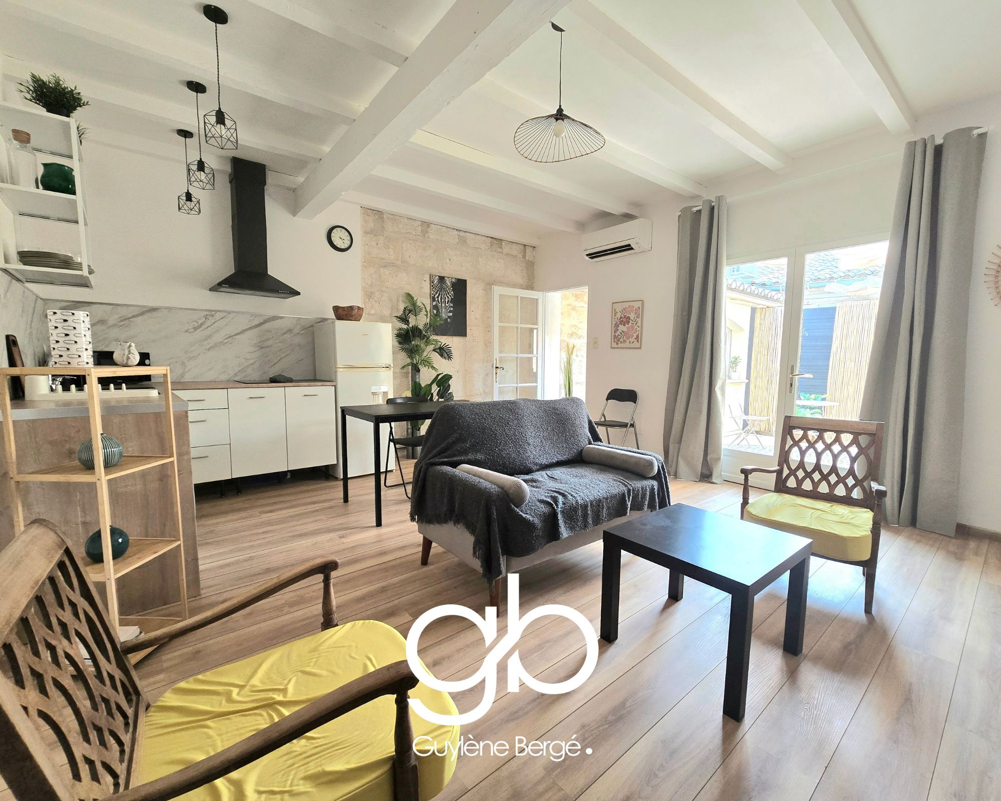 À l'étage, deux appartements offrent des surfaces intéressantes et des extérieurs privatifs : - Un T2 rénové de 40 m², avec cour privative, fonctionnel et prêt à louer. - Un T5 familial de 97 m², baigné de lumière, avec belle hauteur sous plafond, poutres apparentes, et une cour privative de 20 m², un véritable atout en coeur de ville.