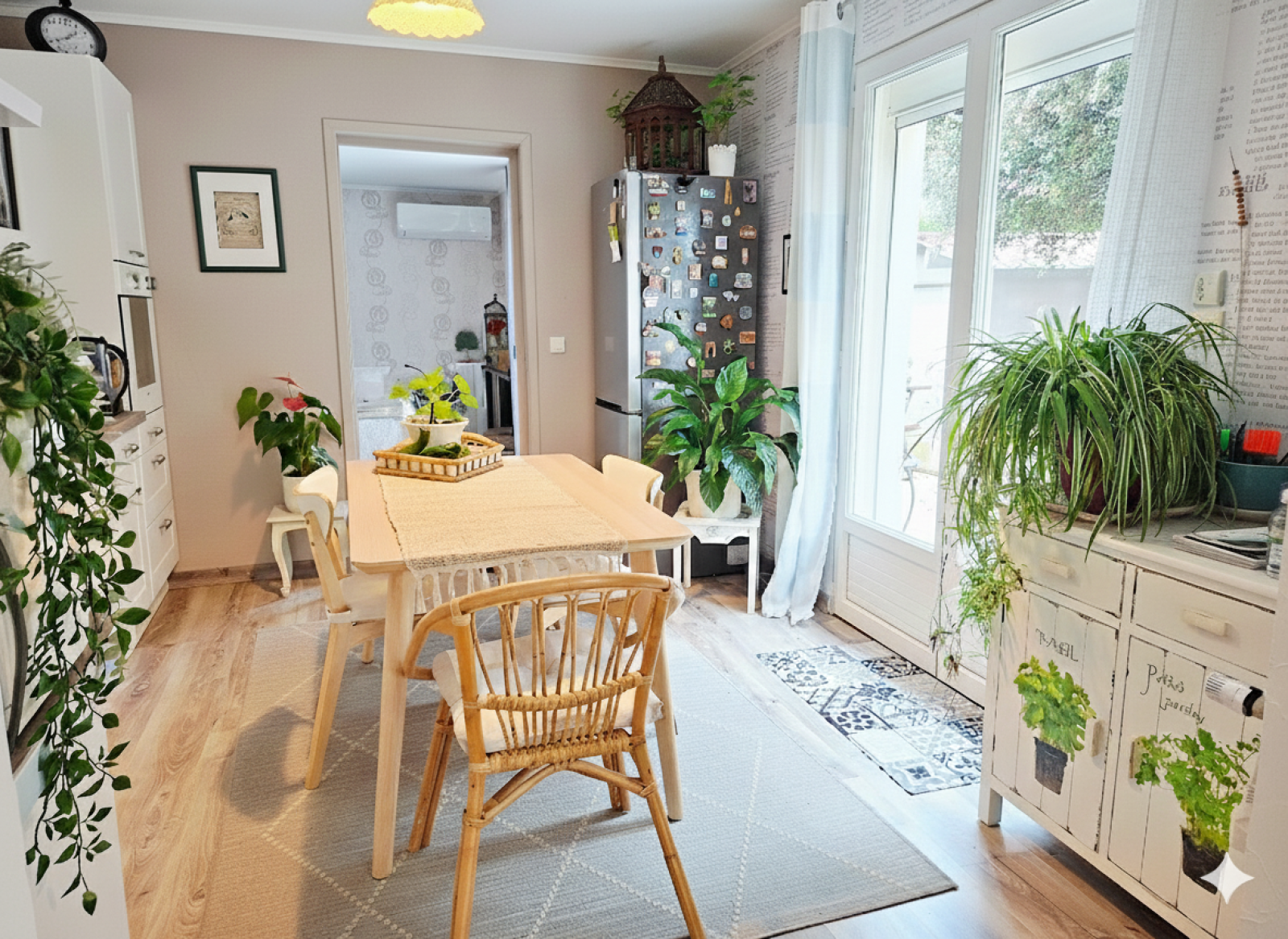 Extérieurs & Stationnement : Jardin arboré et clos de 808 m² sans vis-à-vis, 3 terrasses, et stationnement pour 4 véhicules sur sol carrossable.