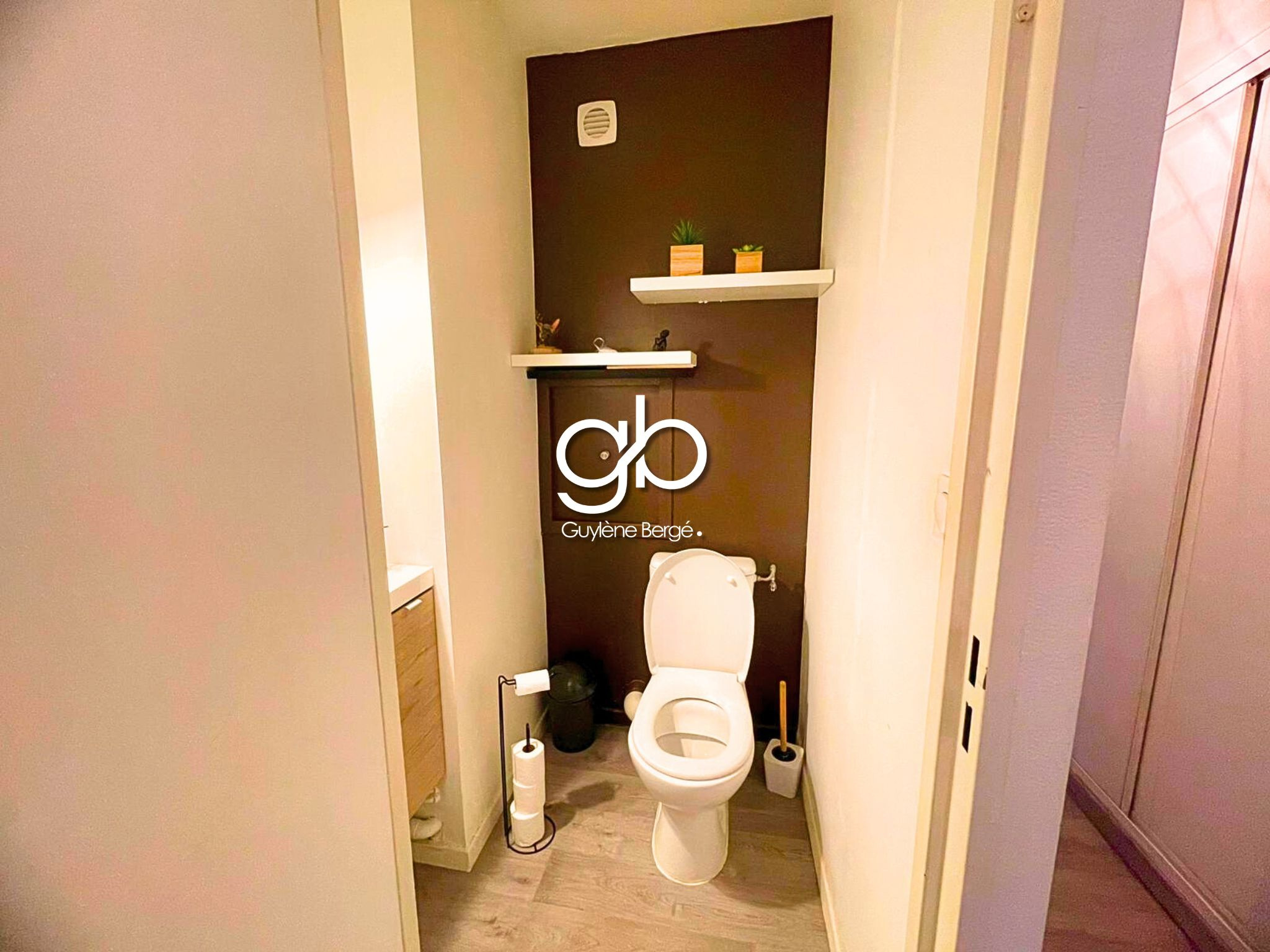 La salle de bain est séparée des toilettes, améliorant le confort de vie au quotidien, notamment pour une famille ou dans le cadre d’une colocation. L’agencement global optimise pleinement les 77 m² habitables, sans perte de surface.