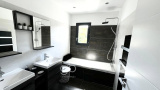 Dès l’entrée, l’architecture séduit par ses lignes épurées et ses volumes équilibrés. Le rez-de-chaussée accueille une belle pièce de vie lumineuse, où la cuisine contemporaine sur-mesure s’ouvre largement sur le séjour. Une grande baie coulissante permet de moduler les espaces selon les envies, tout en conservant une atmosphère conviviale et baignée de lumière grâce aux larges baies vitrées donnant sur l’extérieur.