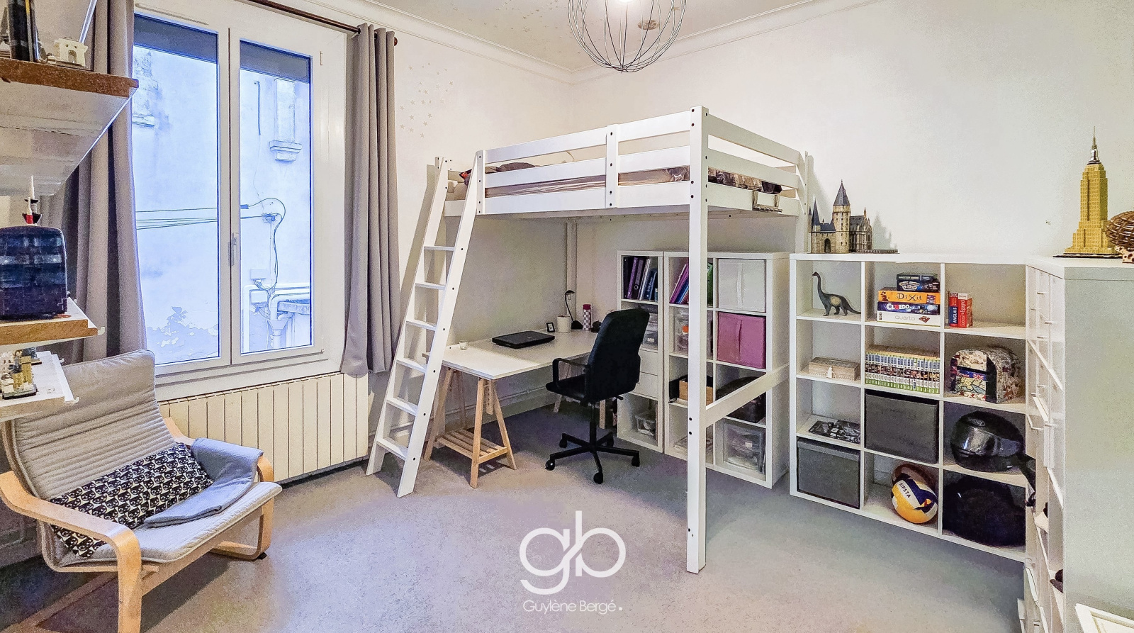 - 3 chambres confortables (entre 12,7 m² et 17 m²), dont une actuellement aménagée en bureau